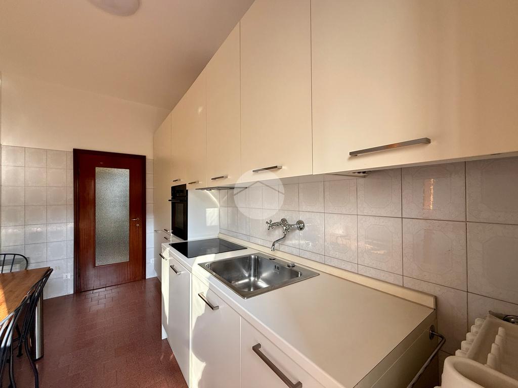 L’ingresso si apre su un pratico corridoio che accompagna ai vari ambienti della casa, distribuiti in modo funzionale. La cucina è abitabile, perfetta per condividere momenti conviviali, e dispone di un balcone di pertinenza. Il bagno, finestrato e ben arieggiato, è completo di vasca.