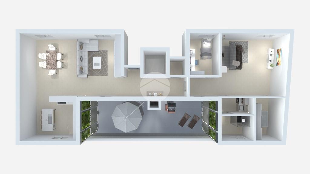 La soluzione è composta da Ampio soggiorno con cucina a vista, Camera matrimoniale con cabina armadio, Bagno finestrato con box doccia, Seconda stanza versatile, ideale come Lavanderia, comodo Ripostiglio e splendido Terrazzo panoramico di 35 mq, ideale per pranzi all'aperto e momenti di relax.